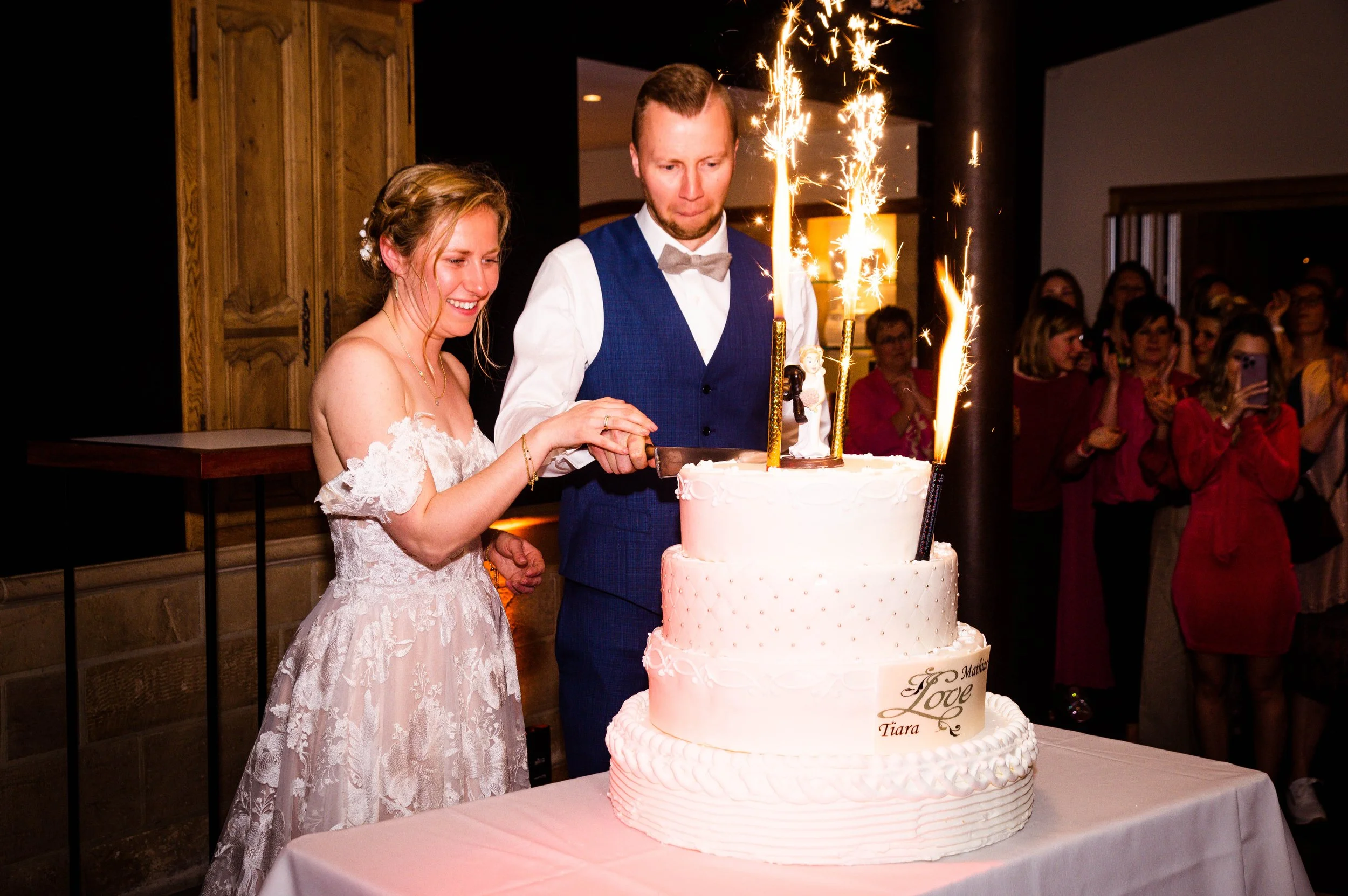 We wilden geen geposeerde foto’s maar echte momenten. En dat is exact wat Niels levert. Hij beweegt bijna onzichtbaar tussen de gasten en vangt elk detail op het juiste moment. De reportage vertelt écht ons verhaal.